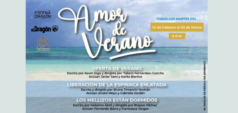 Escena Dragón: Amor de verano 3 marzo a las 8:00 PM hasta el 9:00 PM Escena Dragón: Amor de verano El Dragón de Barranco Cl. Nicolás de Piérola 168, Barranco, Lima, Lima, Lima, Peru Teatro